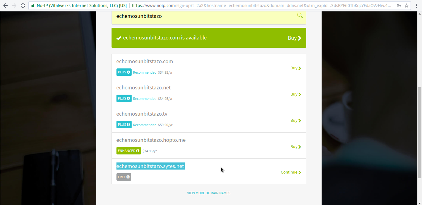 Only one host [echemosunbitstazo.sytes.net] is registered to this account.