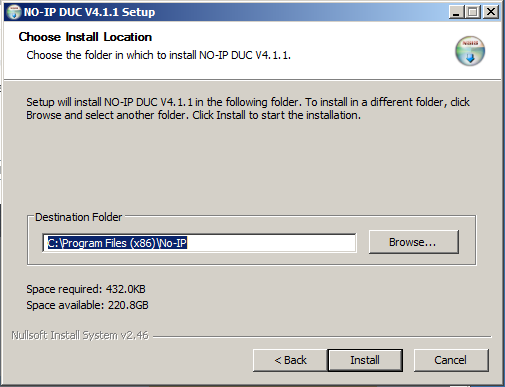 Se instalará en el directorio /opt/noip, recordemos que si configuramos un directorio ajeno a /usr; /usr/local hay que añadir a la variable PATH de nuestro .bash_profile o /etc/profile.d/noip.sh