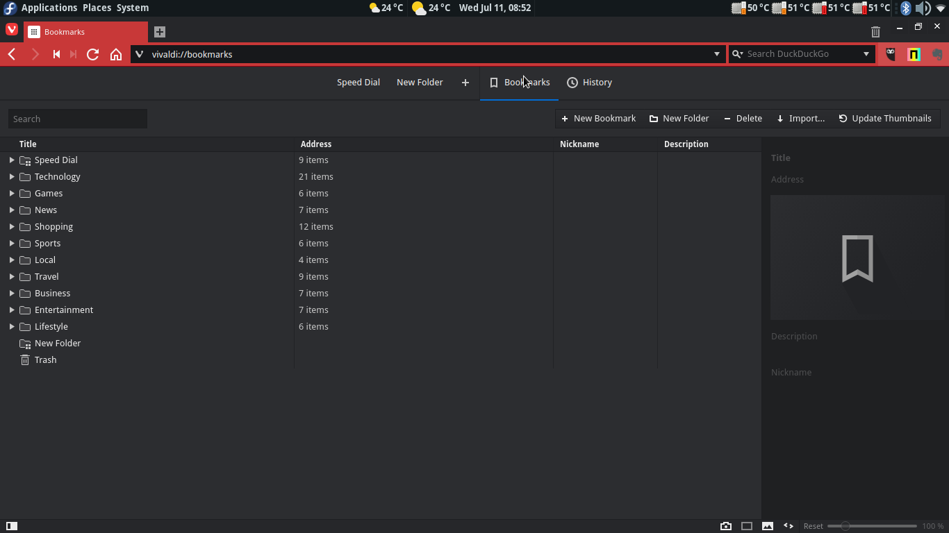 Vivaldi incluye un editor mínimo de colores de la apariencia del navegador, además de poder incorporar un fondo determinado. Pero eso no es todo, ¡también puede editarse a nivel de CSS y personalizarle a tu antojo!